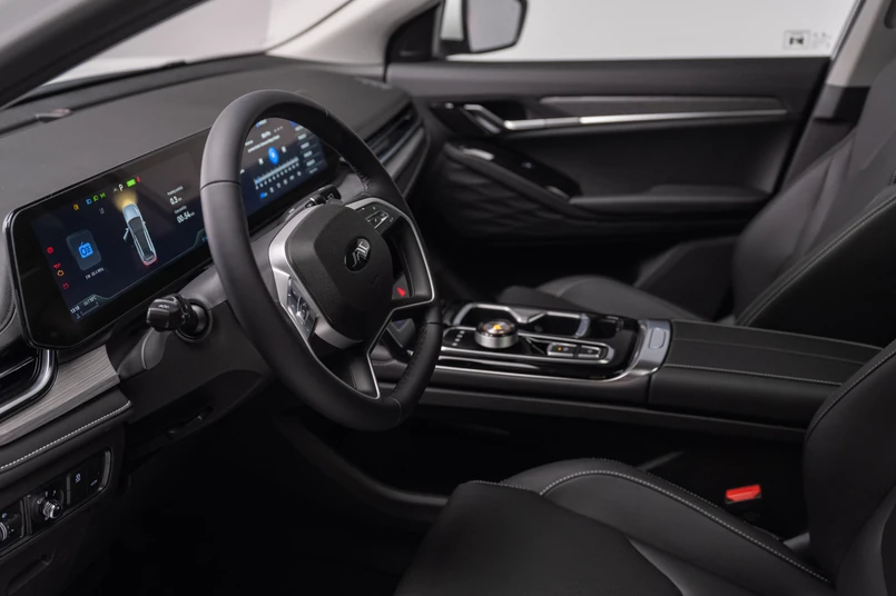 We wnętrzu nowego dominują dwa ekrany o przekątnej 12,3 cala - jeden pełni funkcję cyfrowych zegarów, drugi odpowiada za obsługę systemu multimedialnego. Obsługa Apple CarPlay oraz Android Auto dostępna jest w pełni bezprzewodowo. W standardzie znalazła się również indukcyjna ładowarka do smartfona, a panoramiczny dach dodatkowo rozjaśnia kabinę i potęguje wrażenie przestronności. Nietypowym rozwiązaniem stylistycznym jest z kolei 4-ramienna kierownica.