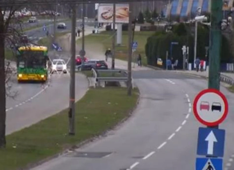 Dramatyczne nagranie pochodzi z kamery miejskiego monitoringu w Tychach. Kierowca pędzący ulicą Sikorskiego po tym jak stracił panowanie autem z impetem wpadł na przejście dla pieszych a potem na chodnik. O mało nie rozjechał pieszego na pasach. Zagroził także kobiecie, która z dzieckiem szła chodnikiem.