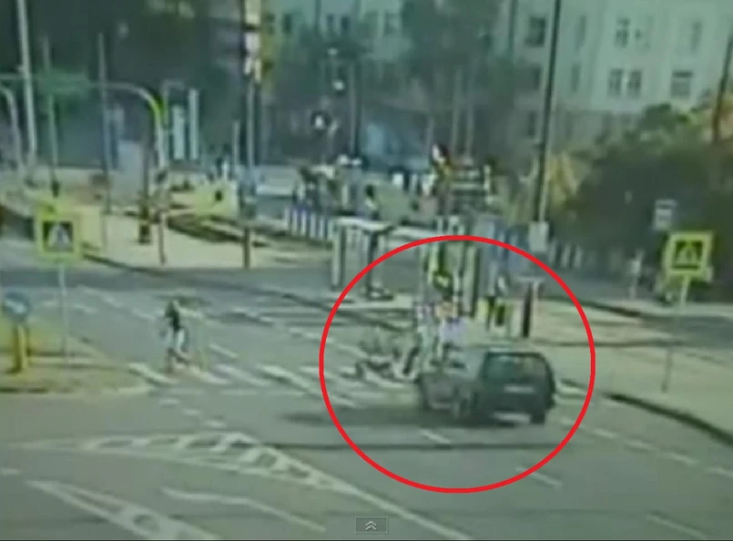 Ulica przy placu Teatralnym w Zabrzu była pusta, piesi weszli na przejście. Wtedy w kadrze filmu nagranego przez miejski monitoring pojawia się samochód. Pędzi prosto na przechodzących przez ulicę mężczyznę i kobietę pchającą wózek z dzieckiem. Ojciec zdążył uskoczyć, matka próbowała ratować dziecko. Kierowca staranował oboje swoim mitsubishi.