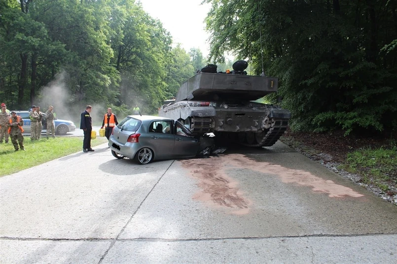 Niemiecka policja poinformowała o wypadku, w którym 18-letnia kobieta z gminy Lippe w Nadrenii-Północnej Westfalii za kierownicą toyoty yaris wjechała po brytyjski czołg prowadzący kolumnę tych pancernych pojazdów.