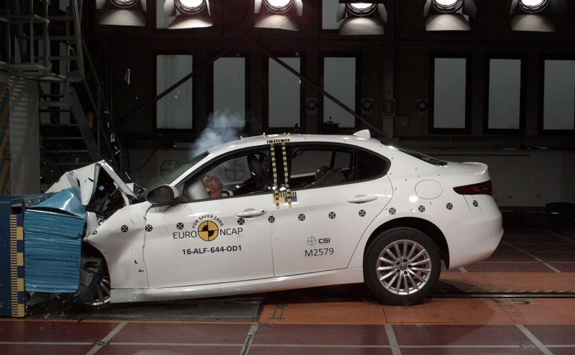 Alfa Romeo Giulia zasłużyła na 5 gwiazdek Euro NCAP. Najnowsza włoska limuzyna zdobyła 98 proc. maksymalnej liczby punktów za bezpieczeństwo dorosłych. W bardzo ważnej kategorii ochrony dzieci podróżujących w samochodzie przyznano 81 proc. oceny. Dodatkowe systemy bezpieczeństwa - 60 proc. możliwych punktów. Badanie w kategorii ochrony pieszych - 69 proc.