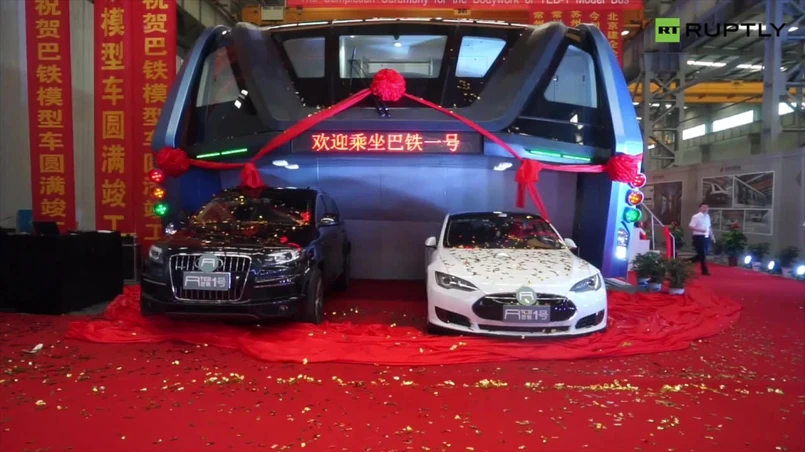 Pierwszy na świecie model autobusu jeżdżącego ponad samochodami zaprezentowano w Chinach. Kabina pojazdu zajmuje dwa pasy ruchu i porusza się 2 metry nad jezdnią. Dzięki temu podczas postojów na specjalnie dostosowanych przystankach nie wstrzymuje ruchu, tylko przepuszcza samochody pod sobą.