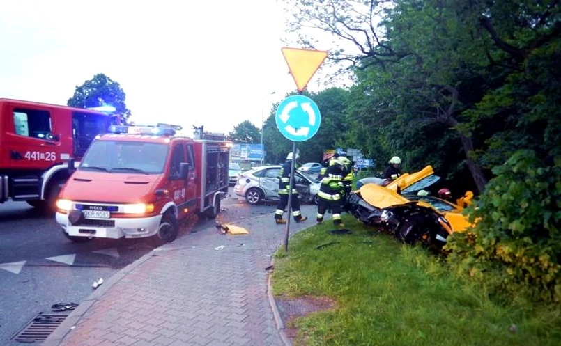 McLaren 650S zderzył się z fordem focusem na rondzie w Krapkowicach - skrzyżowanie drogi krajowej nr 45 z drogą wojewódzką nr 409.