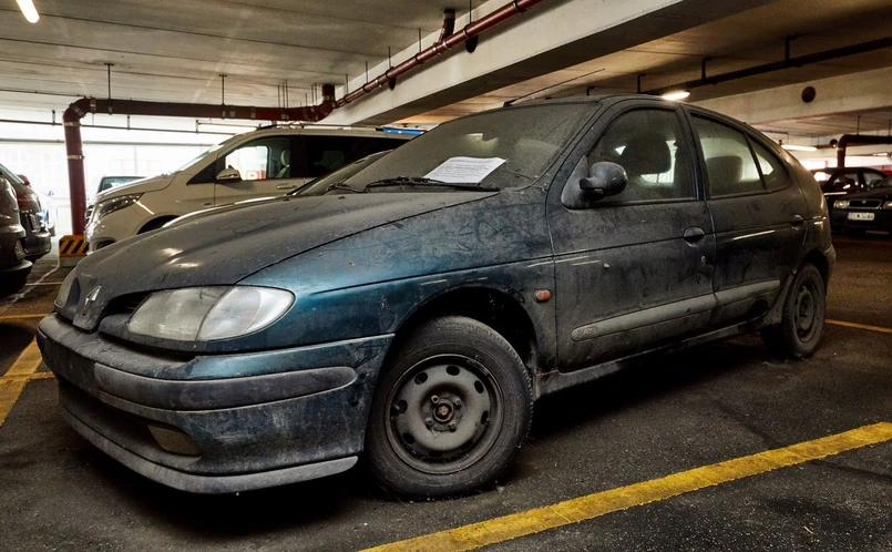 Z kartki przyklejonej do szyby koślawo zaparkowanego Renault Megane wynika, że samochód porzucono na parkingu Galerii Łódzkiej 20 lipca 2016 roku. Jak obliczają przedstawiciele centrum od tamtej chwili licznik odmierzył już ok. 15 tys. godzin.