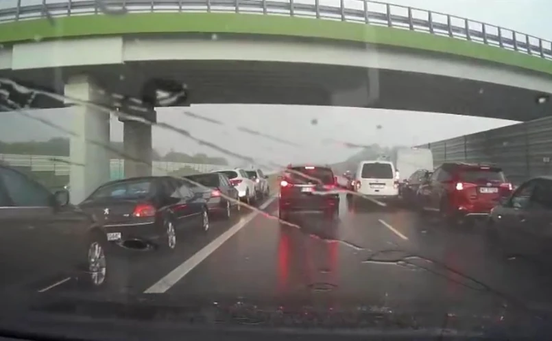 Co było przyczyną takiego zachowania? Z relacji świadków wynika, że zator wywołali kierowcy, którzy chcieli ukryć swoje auta przed… gradem. Ponoć był tak duży, że w niektórych samochodach pękały szyby.