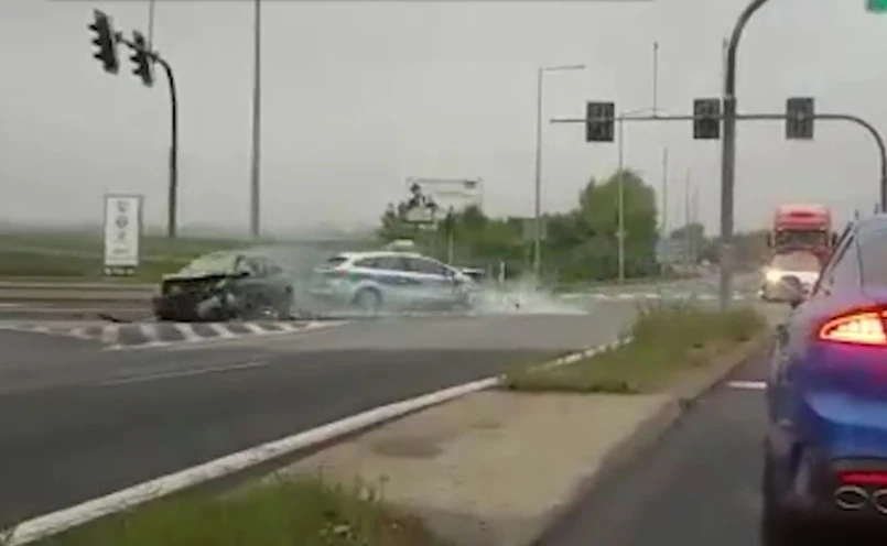 Wypadek na obwodnicy Opola uchwycił jeden z kierowców oczekujących na skrzyżowaniu.