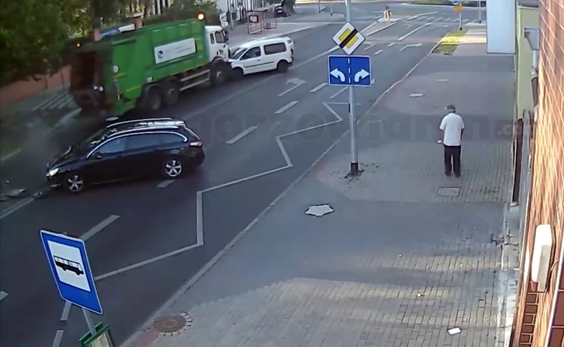 Kamera ustawiona na obserwację jednego ze skrzyżowań w Gorzowie Wielkopolskim uchwyciła niebezpieczną sytuację. Nad ranem rozpędzona śmieciarka staranowała cztery samochody osobowe (kię, peugeota, volkswagena oraz nissana), uderzyła w mur, ścięła znak drogowy i latarnię. Ranny został jedynie kierowca cieżarówki-widmo, który próbował wskoczyć do szoferki - mężczyzna trafił do szpitala w Gorzowie Wielkopolskim.