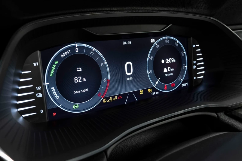 Duży akumulator (Skoda zastosowała tu baterię litowo-jonową magazynującą 13 kWh) pozwoli na jazdę w trybie zeroemisyjnym. Stąd, jeśli zajdzie potrzeba nowa Skoda zmieni się w prawdziwy samochód na prąd. Wtedy już od startu kierowca dostanie pod nogę aż 330 Nm "elektrycznego" momentu obrtowego i do 60 km przejedzie bez najmniejszego obłoczka spalin…