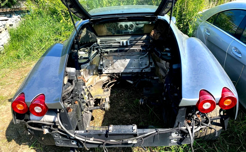 – Ferrari, o którym mowa, jest warte tyle, ile masa złomu składająca się na to auto – relacjonował pan Grzegorz. – Samochód stoi od ponad 2 lat, z otwartymi szybami, w środku tapicerka jest zagrzybiała i spleśniała, była wielokrotnie zalana. Na uszczelkach wyrósł mech, a w drzwiach osy zrobiły gniazdo. Na aucie pozostał jeden emblemat Ferrari, reszta zniknęła. Brak silnika, skrzyni biegów, układu przeniesienia napędu. Uszkodzone zawieszenie i układ kierowniczy. Auto nie nadaje się do niczego. Nawet plastikowe części są uszkodzone, niekompletne, połamane czy zagrzybiałe. Aż łza w oku staje na widok takiego traktowania takich samochodów – opisał.