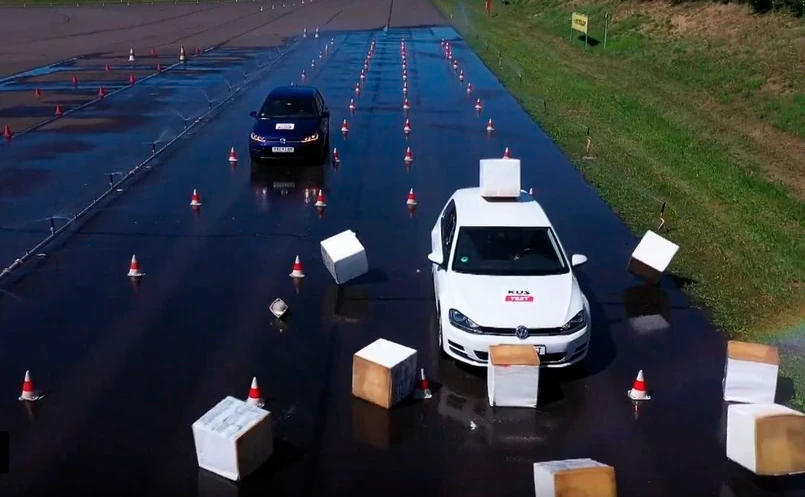 Test odporności na aquaplaning także przemawia do wyobraźni. Kiedy opony referencyjne bez problemu przejeżdżają wodę z prędkością 80 km/h, chińskie ogumienie "traci głowę" – samochód robi się podsterowny i nie można go utrzymać na kursie. Różnice sięgały od 21 do 31 proc.! A testowy Golf na tanich oponach wypadł z trasy (wideo).