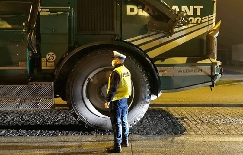 W tym przypadku okazało się jednak, że pojazd nie był zarejestrowany, a więc nie był dopuszczony do ruchu po drogach publicznych. – Ponadto 38-letni mieszkaniec Częstochowy kierujący kolosem nie posiadał uprawnień do kierowania nim. Mężczyzna był trzeźwy. Oświadczył, że pracował przy wycince drzew na budowie trasy S-14 i wracał właśnie do bazy – wyjaśnili funkcjonariusze.
