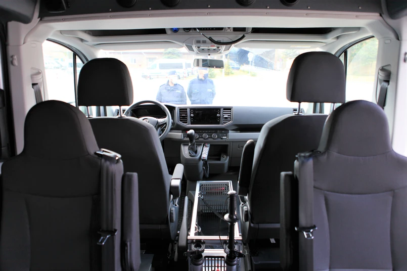 Każdy nowy oznakowany Volkswagen Crafter dla prewencji jest przystosowany dla 7 policjantów wraz z wyposażeniem. Wnętrze podzielono na trzy przedziały: pierwszy to miejsca dla kierowcy i dowódcy, drugi to fotele dla 5 funkcjonariuszy, w trzecim mundurowi przewożą sprzęt służbowy potrzebny m.in. do zabezpieczania demonstracji czy wydarzeń sportowych. Charakterystyczny przedział zabezpieczony siatką pomieści tarcze ochronne, pałki szturmowe, hełmy, miotacze pieprzu czy broń.