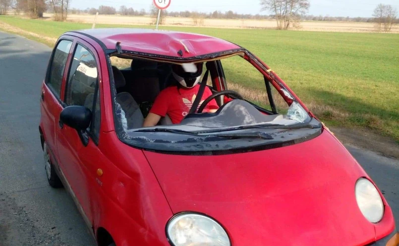 – Pomimo uszkodzeń pojazdu siedzący w nim mężczyzna miał zapięte pasy bezpieczeństwa oraz kask ochronny na głowie, o czym świadczy zdjęcie zrobione w trakcie jazdy. Widok kierującego okazał się bezcenny– podkreśliła Hańdziuk. – Po sprawdzeniu w systemie policyjnym okazało się, że kierujący posiada wydany przez sąd czynny zakaz prowadzenia pojazdów. O dalszych losach 21-latka zadecyduje sąd – skwitowała.