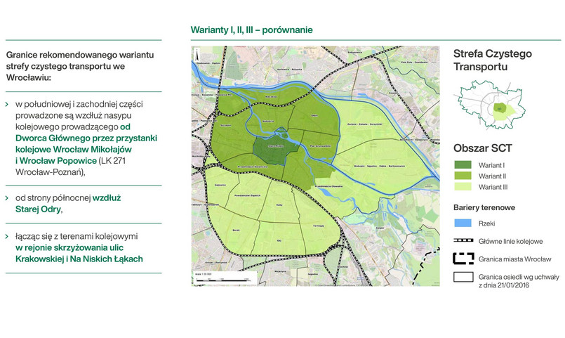 Eksperci przygotowali również trzy zakresy Strefy Czystego Transportu. Przy ich wyznaczaniu wykorzystali typowe dla Wrocławia uwarunkowania terenowe, czyli z granice oparte na rzekach oraz nasypach kolejowych. Podobne rozwiązania już funkcjonują w UE.