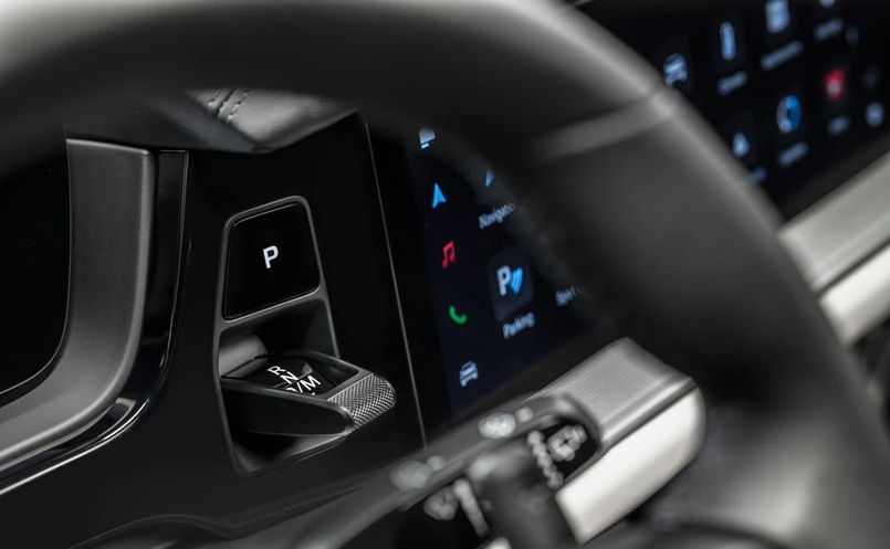 Jak podkreśla firma "kluczową cechą nowego Porsche Driver Experience jest właściwa równowaga między elementami cyfrowymi i analogowymi". Dlatego wszystkie elementy, które są ważne dla wrażeń z jazdy, zgrupowano teraz wokół kierownicy. Po lewej jej stronie znajdziemy tradycyjnie przycisk do uruchamiania silnika, ale już zupełną nowością jest przeniesienie dźwigni skrzyni biegów z konsoli środkowej na deskę rozdzielczą w miejsce między zegarami a głównym ekranem systemu multimedialnego. W efekcie sama konsola środkowa zdominowana jest teraz przez duży panel klimatyzacji z fizycznymi przyciskami sterującymi oraz pokrętłem do regulacji głośności systemu audio.