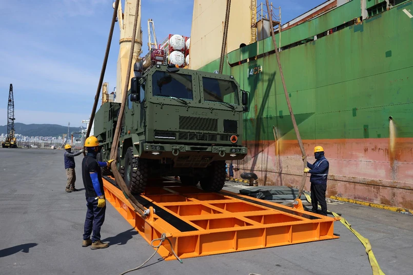 Jelcz z napędem 8x8 niedawno zaliczył testy mobilności na państwowym poligonie w Changwon na południu Republiki Korei. Samochód dźwigał wyrzutnię rakiet Homar-K, czyli polski wariant koreańskiej wieloprowadnicowej wyrzutni rakiet K239 Chunmoo. Teraz pierwszy Jelcz uzbrojony po zęby dotarł do gdańskiego portu.