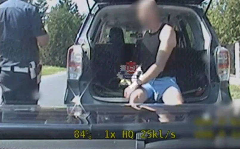 Mąż w bagażniku, żona za kierownicą i to pod nosem policji (WIDEO)