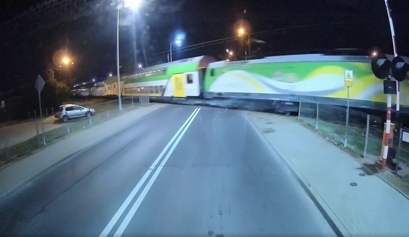 Skrajnie niebezpieczna sytuacja na przejeździe kolejowym w Płocku. Pociąg i autobus komunikacji miejskiej znalazły się na kursie kolizyjnym. Rogatki przed przejazdem nie zostały opuszczone, a tragedii udało się uniknąć tylko dzięki czujności kierowcy. Film z autobusu pokazuje, jak szofer hamuje w ostatniej chwili i zatrzymuje pojazd przed zaporami.