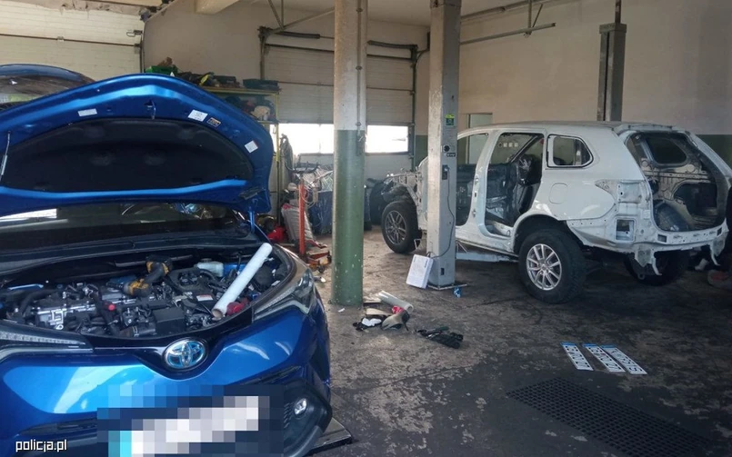 Funkcjonariusze pojawili się na miejscu w momencie, gdy w garażu dwóch mężczyzn demontowało Toyotę CH-R. Samochód miał już zdjęte wszystkie drzwi, brakowało też wyposażenia wnętrza, a tablice rejestracyjne japońskiego auta nosiły widoczne ślady podrabiania i przerabiania. Na tej samej posesji policjanci odnaleźli też Hyundaia Tucsona, również wyposażonego w tablice pochodzące z innego źródła niż właściwy niemiecki wydział komunikacji. Oba samochody, jak wcześniej ustalili funkcjonariusze, zostały skradzione na terenie Niemiec. Pracujący w pocie czoła mężczyźni zostali zatrzymani.