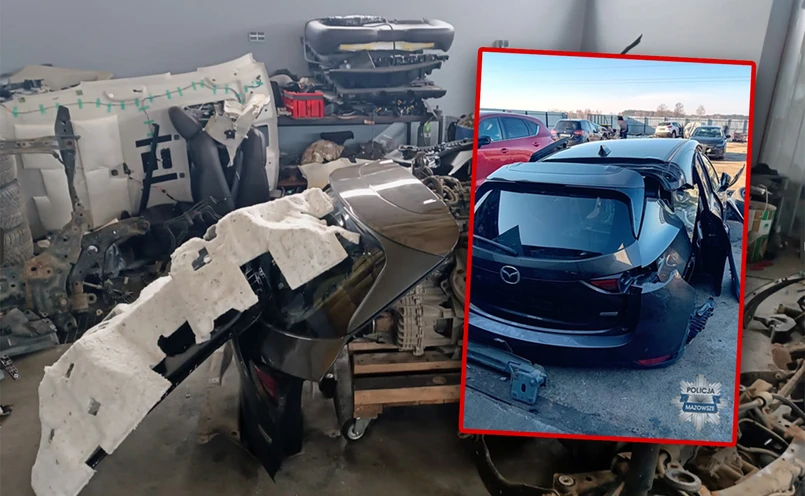Akcja policji pozwoliła odzyskać części o wartości około 470 000 zł. Na posesji oraz w garażach policjanci zabezpieczyli m.in. Mazdę CX-5, pochodzącą z kradzieży. Złodzieje zdążyli już zedrzeć numer VIN z nadwozia, by utrudnić identyfikację pojazdu. Kolejne auto japońskiej marki było już rozebrane do ostatniej śrubki.