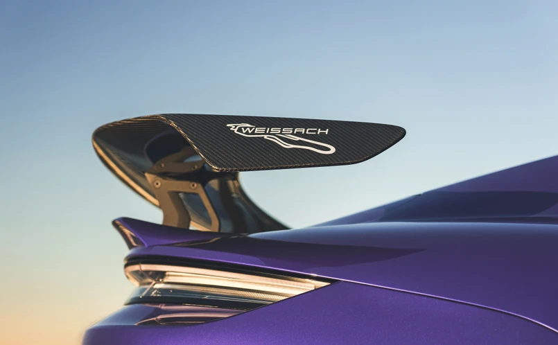 Dodatkowe rozwiązania poprawiające aerodynamikę obejmują deflektory powietrza w podwoziu oraz nowy przedni dyfuzor. Z tyłu pojazdu z pakietem Weissach znajduje się nieruchome skrzydło wykończone włóknem węglowym. Całkowita siła docisku generowana przez spojler wynosi 220 kg.