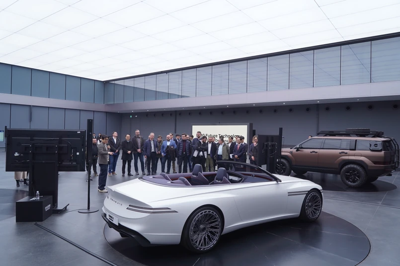 Drugim projektem, który nam pokazano, to koncepcyjny projekt luksusowej marki Hyundaia - Genesis. Auta tej marki, choć nie są dostępne w polskich salonach, można nabyć na terenie Europy - salony są choćby w Szwajcarii. To biały kabriolet, przypominający linią luksusowe, drogie motorówki. Firma nie ukrywa, że projektując ten model, wzorowała się na klasycznych autach z lat 50-60. A, jak dodają projektanci, dzięki silnikowi elektrycznemu, nie trzeba już martwić się o grill chłodnicy, bo jest on niepotrzebny, można więc trochę zaszaleć z projektem.