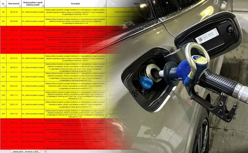 Łącznie w 2023 r. do badań pobrano 1584 próbki paliw. W tym były 832 próbki benzyny i 752 próbki diesla. Wynik? 41 próbek nie spełniało wymogów laboratoryjnych. Lwia część, bo aż 34 przypadki nieprawidłowości dotyczyły oleju napędowego (tylko 7 benzyny). To też oznacza, że 2,59 proc. z przebadanych próbek nie spełniało parametrów, których od paliw sprzedawanych na stacjach wymagają przepisy. Czyli w 2023 r. odsetek paliw niespełniających wymagań jakościowych okazuje się dwukrotnie wyższy niż w 2022 r.