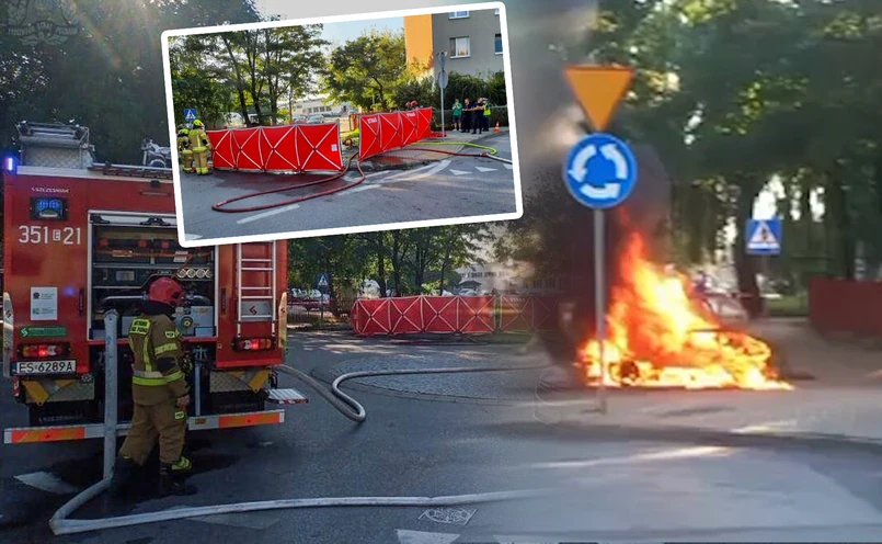 Pożar samochodu elektrycznego w Skierniewicach. Ciało w środku