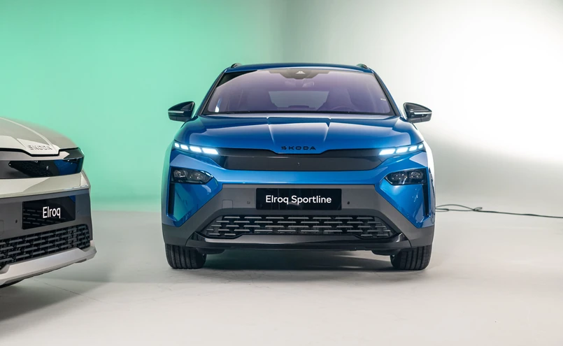 Elroq z modnie narysowanym 4,5-metrowym nadwoziem w poręcznym formacie podwyższonego, pięciodrzwiowego coupe wjeżdża do najszybciej rosnącego segmentu kompaktowych SUV-ów. Wygląda jak prototyp, który uciekł na ulicę. Jednak to pierwsza seryjna Skoda stworzona w zgodzie z nowym językiem stylistycznym Modern Solid. Stąd zamiast pionowo ustawionego grilla pojawiła się masywna przednia część nazwana Tech-Deck Face, która za ciemnym szkłem skrywa radar i kamerę odpowiedzialne za prowadzenie auta. Wyżej tuż pod krawędzią maski biegnie animowany pas świetlny, a nad tym zamiast znanego logo ze strzałą pierwszy raz mamy napis SKODA. Elroq na świat patrzy przez lampy, które przewidziano w dwóch wersjach.