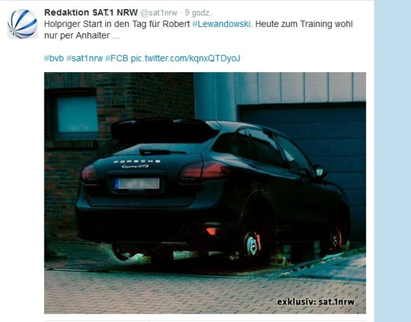 4 Gazeta Ruhr Nachrichten pisząc na Twiiterze o okradzionym porsche Lewandowskiego zrobiła też ukłon w stronę polskich czytelników/fanów futbolu - komunikat podany jest także w języku polskim.