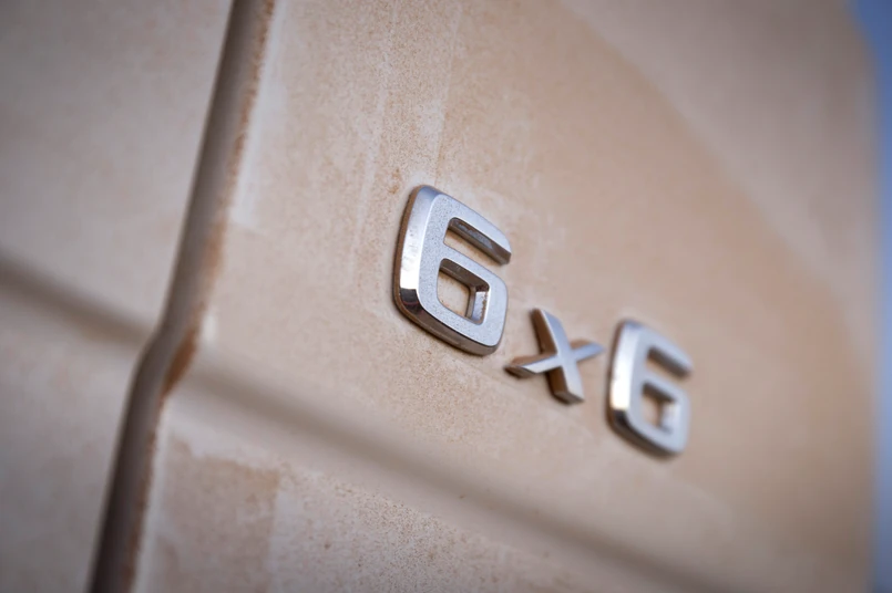 2 Moment obrotowy do trzech osi przekazuje 7-biegowy automat 7G-TRONIC. Potwór toczy się na sześciu kołach w rozmiarze - uwaga! - 37 cali. Napęd tylnych osi był sprawdzony w pojazdach przygotowanych dla australijskiej armii. Również osie portalowe, które w G 63 AMG 6x6 świętowały swój debiut w samochodzie cywilnym, mają wojskowe korzenie.