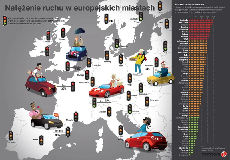 Pełna lista najbardziej zatłoczonych i zakorkowanych europejskich miast: