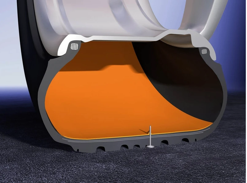 Wnętrze opony pokrywa kleista warstwa substancji, która momentalnie po przebiciu zasklepia dziurę. Mało tego, nawet po wyciągnięciu pechowego gwoździa z gumy powietrze nie zejdzie - lepka powierzchnia natychmiast zaklei dziurę, ale pod warunkiem, że jej średnica nie będzie większa niż 5 mm.