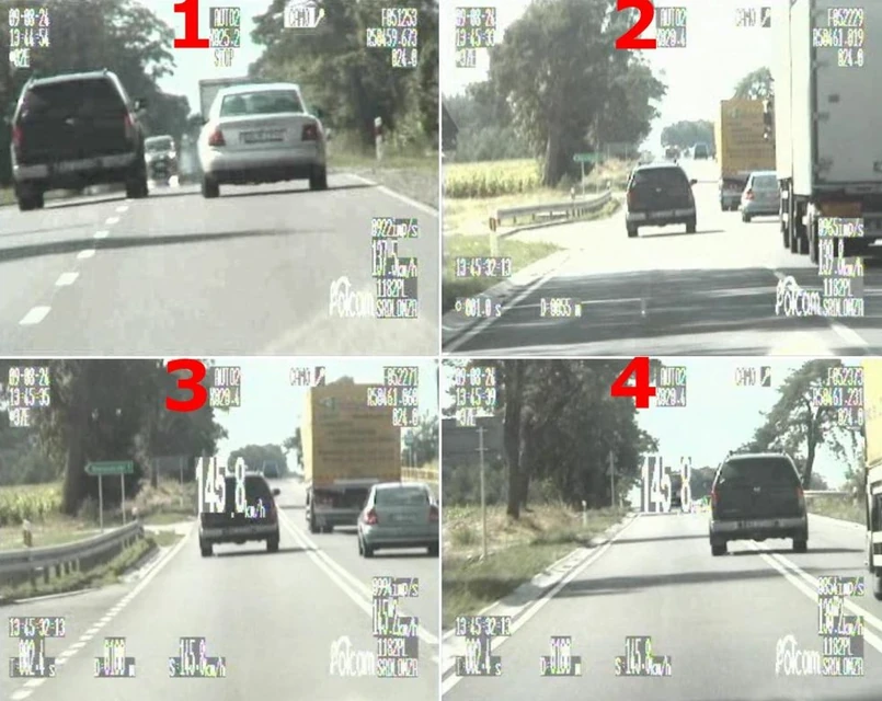 Prędkość, jaką zapisał wideorejestrator w momencie bezmyślnego manewru to 145 km/h. Na szczęście żaden z wyprzedzanych pojazdów nie skręcał w tym czasie w lewo. Wtedy z pewnością doszłoby do tragedii. Piracką jazdę przerwali policjanci.