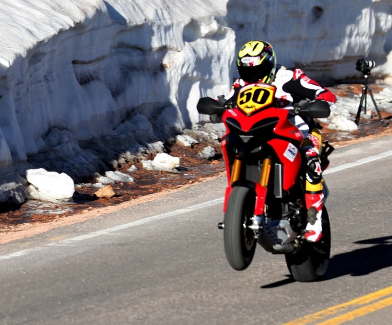 Kiedy Carlin Dunne szykował się do swojego przejazdu, weteran Alexander Smith, na Multistradzie 1200 S zespołu Spider Grips przejeżdżał trasę w doskonałym stylu. Metę osiągnął z czasem 12:12,2, co pozwoliło na osiągnięcie trzeciego stopnia podium w klasie 1205 ccm. Wielokrotny zwycięzca Pikes Peak, doświadczony Greg Tracy nie dojechał do mety, zaliczając groźnie wyglądający wypadek. Czwarte Ducati Multistrada także nie ukończyło wyścigu. Podróżujący na nim Mark Cernicky, po kilku zakrętach od startu złapał gumę, co uniemożliwiło mu dalszą jazdę.
