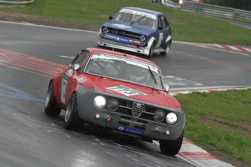 Pod koniec 3 okrążenia zaczęło padać i padało już, z niewielkimi przerwami, do końca wyścigu. Zmienna pogoda na różnych odcinkach toru to charakterystyczna cecha Nurburgringu – w końcu okrążenie ma tutaj ponad 20 km! Częściowo tor był suchy, na innym odcinku padał ulewny deszcz, a miejscami pojawiała się śliska maź spowodowana stojącą wodą, o której ostrzegają wirażowi odpowiednimi flagami.