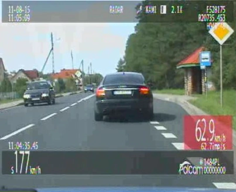 Pomiar dokonany przy pomocy wideo rejestratora potwierdził ich przypuszczenia. Samochód pędził z prędkością prawie 180 km/h. W tym miejscu dopuszczalna prędkość wynosiła maksymalnie 90 km/h. Kierowca audi przekroczył więc dopuszczalną prędkość prawie dwukrotnie.