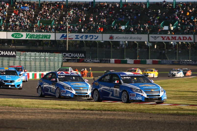 Konsekwencją chaotycznego startu w pierwszym wyścigu były dwa wypadki z udziałem kilku samochodów, w których na szczęście nie ucierpiały modele Chevroleta. Po wyjeździe na tor samochodu bezpieczeństwa i ponownym starcie całej stawki na prowadzenie wysunął się Muller, jednak nie zdołał powstrzymać szturmu Menu, który wyprzedził go na ósmym okrążeniu. Szwajcar utrzymał pierwszą pozycję aż do mety, a zaraz za nim uplasował się Rob Huff. Muller stracił jeszcze dwie pozycje, kończąc wyścig na czwartym miejscu, natomiast Arai był piętnasty.