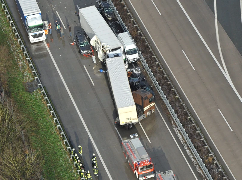W potężnym karambolu na autostradzie A1 w północno-zachodnich Niemczech, niedaleko miejscowości Cloppenburg, zginęła jedna osoba. Trwa akcja ratunkowa, ratownicy próbują dotrzeć do osób uwięzionych w rozbitych pojazdach. Jest wielu rannych.