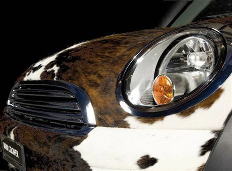 Brunatno-białe nadwozie nie powstało jednak w lakierni, tylko w najprawdziwszej garbarni. Do oprawienia mini coopera zużyto pięć skór byków i krów z Normandii. Każda z nich nie mogła mieć nawet najmniejszej szramy czy skaleczenia.