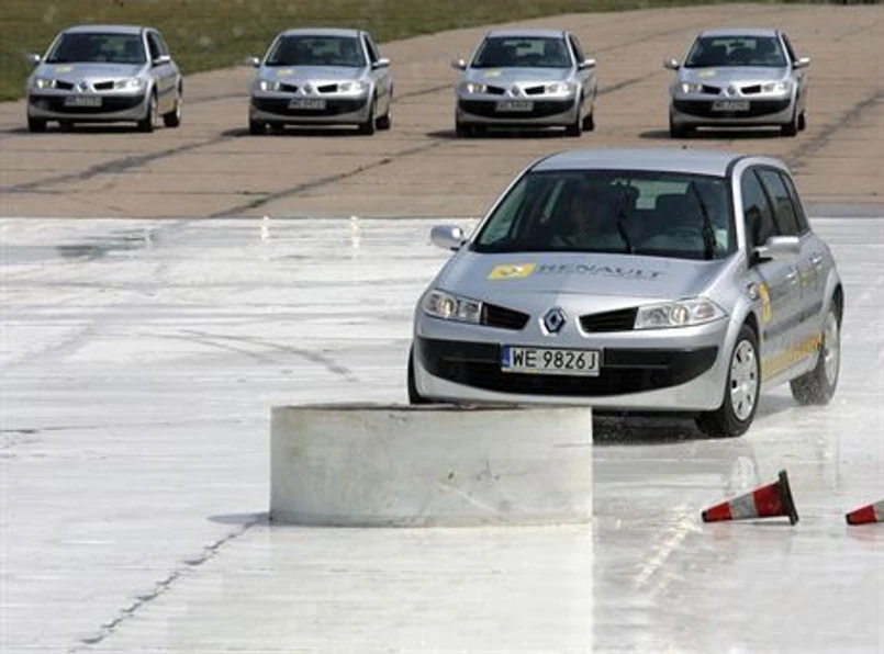 Szkolenie na autodromie nie jest po to, żebyś potem mógł jeździć poślizgami i szpanować. Nie! Tu chodzi o coś zupełnie innego. Kurs służy temu, żebyś oswoił się z ekstremalnymi sytuacjami i wyrobił sobie odruchy obronne, które później, już na drodze, mogą ci uratować życie. Zaufaj fachowcom, a nie swojej dumie. Na zdjęciu Szkoła Jazdy Renault.