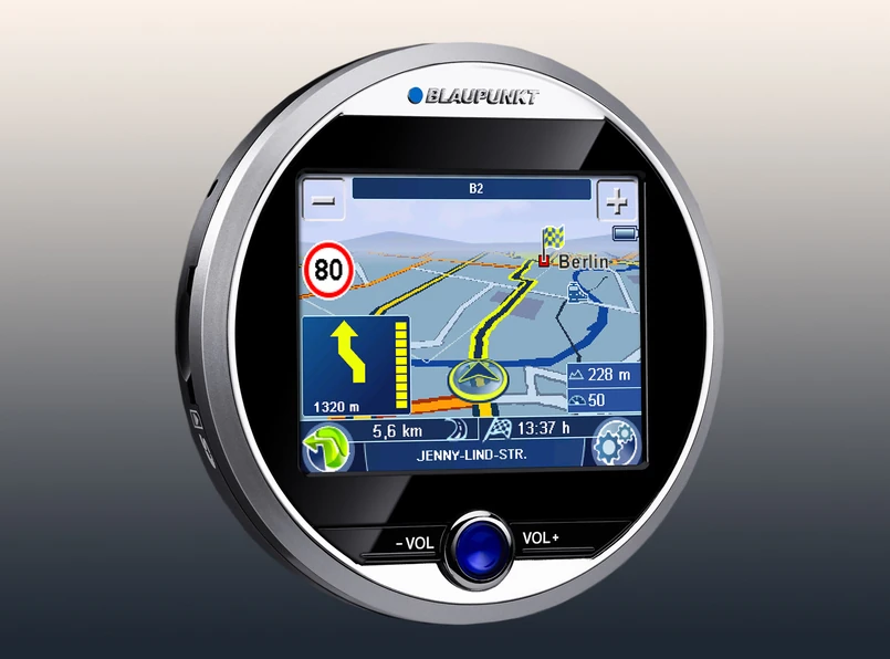 Blaupunkt TravelPilot Lucca 3.5 Edition to pierwszy system nawigacyjny w oryginalnej, okrągłej obudowie. Urządzenie podwieszone w aucie wygląda jak lusterko kosmetyczne…