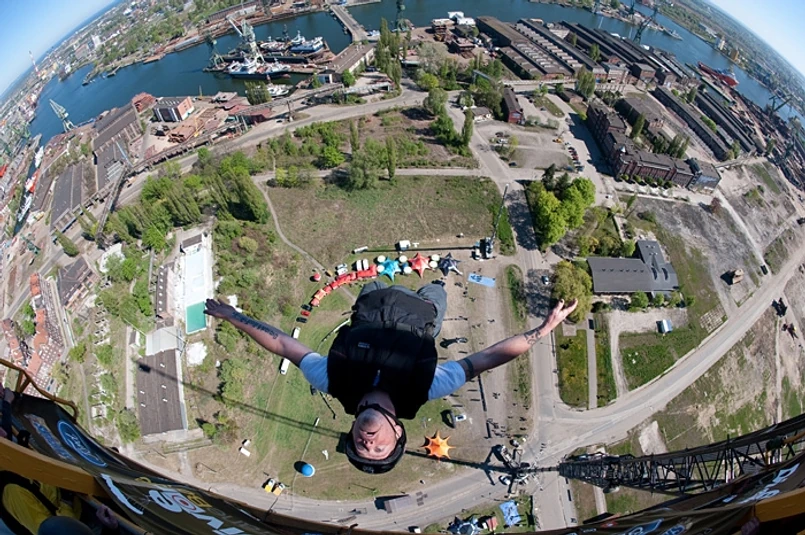 Tak w skrócie można opisać zasady zawodów w skokach B.A.S.E. Co to jest? Otóż skoki B.A.S.E. kwalifikują się do najbardziej ekstremalnych i niebezpiecznych na świecie skoków ze spadochronem. Polacy mogli zobaczyć na czym polega ta widowiskowa dyscyplina w czasie imprezy Diverse Crane Boogie zorganizowanej w Gdańsku. To były pierwsze tego rodzaju zawody w naszym kraju.