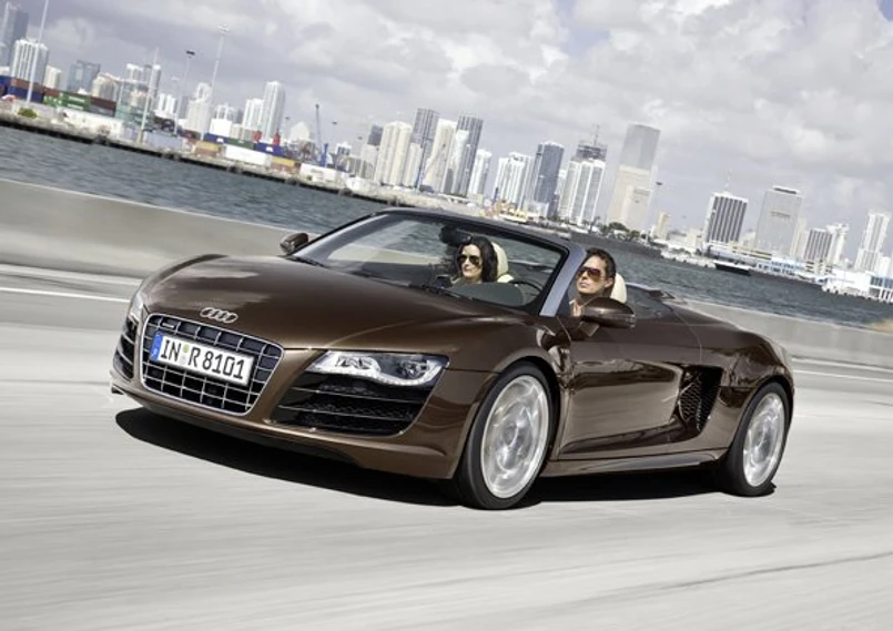 Ten arsenał wystarczy by do setki wystrzelić w 4,1 sekundy. Sprint do 200 km/h trwa ledwie 12,7 s. R8 spyder rozpędza sześć biegów ręcznych. Prędkość maksymalna to 313 km/h.