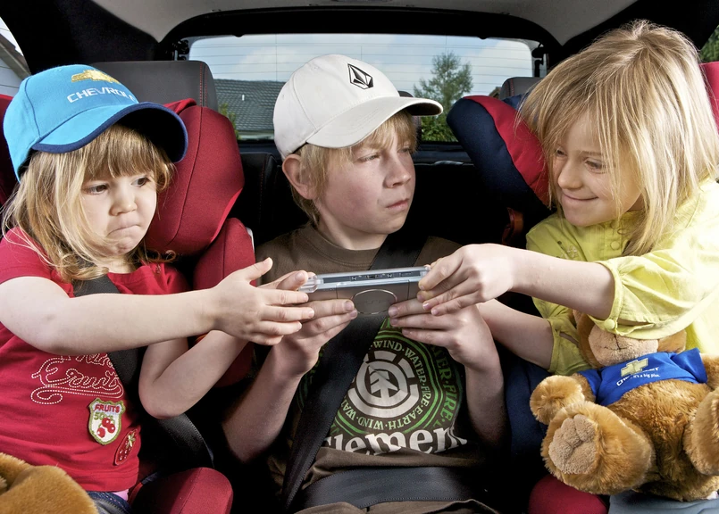 Dobre rozwiązanie to zaplanowanie atrakcji i gier, które zapewnią wszystkim rozrywkę i odwrócą uwagę od samej podróży. Dopilnuj, aby zabrać ze sobą talię kart, książeczki z zadaniami, papier, naklejki i ulubione zabawki (tylko miękkie). Przyda się też zestaw piosenek czy opowieści w głowie… Starszą "załogę" zajmą kieszonkowe konsole do gier, przenośne odtwarzacze DVD, CD z muzyką lub opowiadaniami.