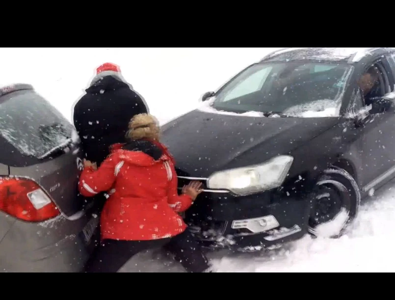 Wideo może wywoływać śmiech, ale synoptycy nie mają dobrych wieści dla kierowców - intensywne opady śniegu np. w Małopolsce od rana utrudniają jazdę. Na drogach wojewódzkich cały czas pracują drogowcy. Główne drogi są przejezdne. Problemy z ruchem mogą się pojawić, głównie przy wzniesieniach.