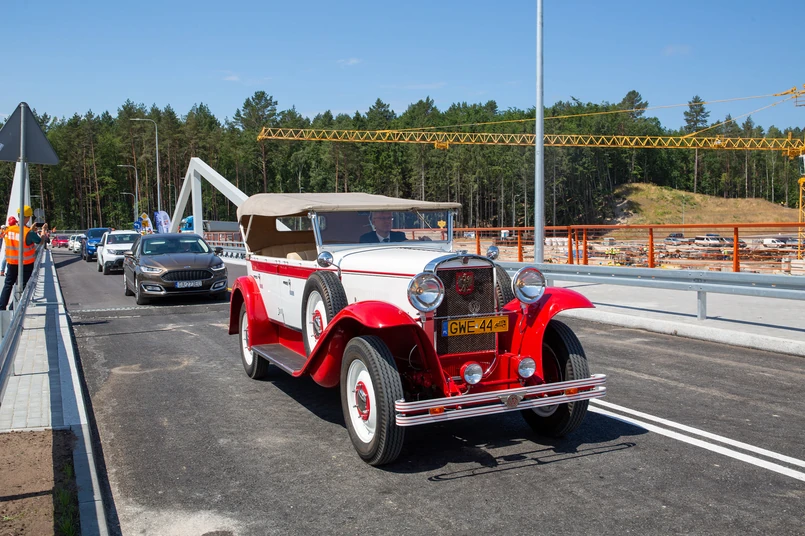 A pierwszym autem, które przejechało przez tę przeprawę był biało-czerwony CWS T1 Torpedo - słynna replika stworzona przez pasjonata i mechanika Ludwika Rożniakowskiego z Wejherowa. Samochód wrócił do świetności po wypadku, do którego doszło jesienią 2018 roku.