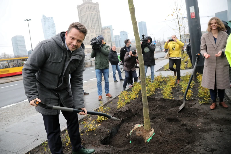 Rafałowi Trzaskowskiemu w konferencji prasowej towarzyszył wiceprezydent Michał Olszewski oraz Magdalena Muchowska koordynatorka, która - jak zapowiedział - prezydent Warszawy, "będzie odpowiedzialna za zieleń i za walkę z ociepleniem klimatycznym".