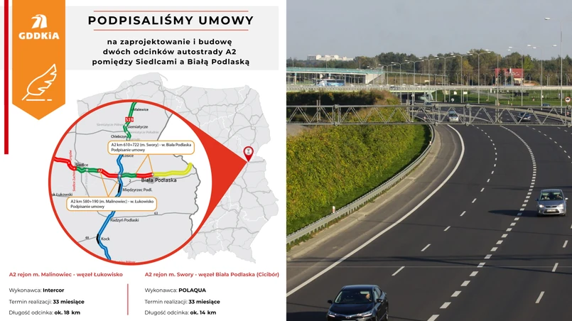 Autostrada A2 Siedlce - Biała Podlaska to ok. 63,5 km
