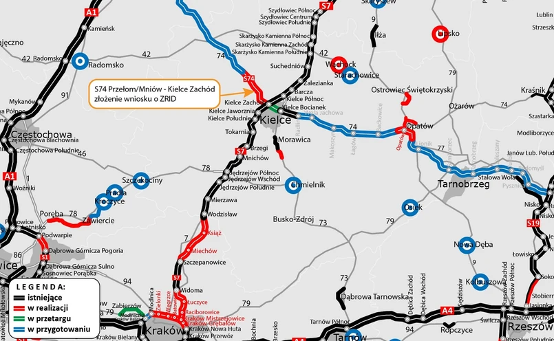 Droga ekspresowa S74 od Mniowa do Kielc jest realizowana w systemie Projektuj i buduj od marca 2022 roku. Uzyskanie decyzji ZRID pozwoli rozpocząć roboty budowlane na tym odcinku. Przy okazji uruchomi procedurę związana z wyceną i wypłatą odszkodowań za nieruchomości znajdujące się w przebiegu drogi.